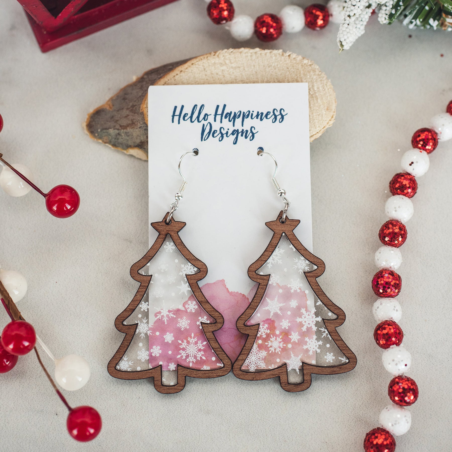 Holiday Laser Cut Hand Painted Wood Dangle Earrings