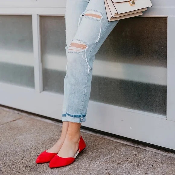 Make a statement with our red pointed flat! This red shoe is for those who like a pop of color. Pair this red d’orsay with your favorite skinny jeans for the perfect look.